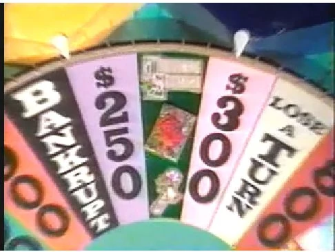 - In an unusual move, when Charlie describes the Bonus Round prizes after the Speed-Up, the value of one of them (specifically, a trip to Bora Bora) appears onscreen. The graphic resembles the $25,000 win graphic in use at the time on a red background with a gold frame, and it spins onscreen.